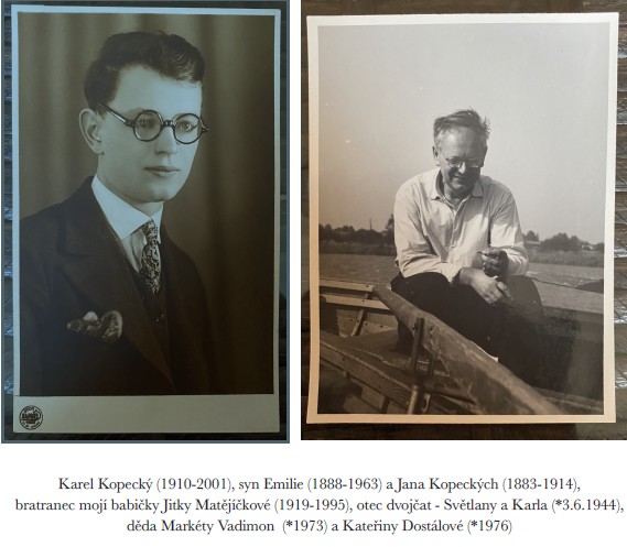 Kdy zemřeli Ladislavovi rodiče, tedy Jitky prarodiče Josef a Anna Brantlovi, jsem bohužel dosud nedohledal, vím však něco více k osudu některých Ladislavovych sourozenců, a to zejména také díky tomu, že se mnou v létě roku 2024, na základě prezentací naší genealogie na internetu, navázala milý kontakt pravnučka Ladislavovy dcery Emílie (1888-1963), jejíž dědeček Jan Kopecký je ke všemu bratr matky naší babičky Jitky – Anny Růženy Kopecké. Pravnučka se jmenuje Markéta Vadimon (*1973) a žije a pracuje v Paříži. V loňském roce nás navštívila se svým otcem Karlem (*1944) a tetou, jeho dvojčetem, Světlanou (*1944). Světlana přinesla lístky, které si posílala Emílie se svým mužem Janem a také řadu rodinných fotografií, do té doby pro mě neznámých – mimo jiné také fotografii našeho prapradědečka Josefa Brantla (1856-1935).